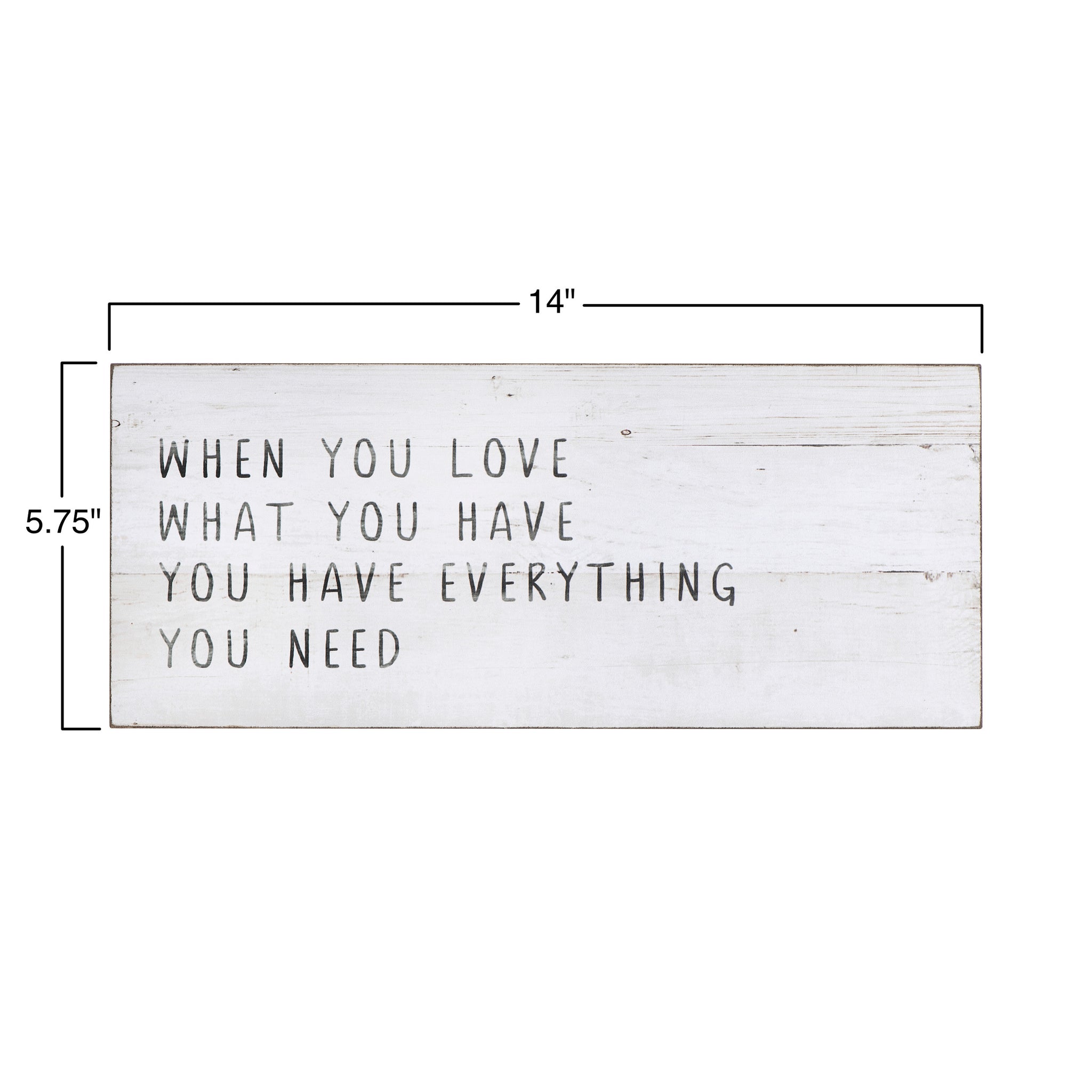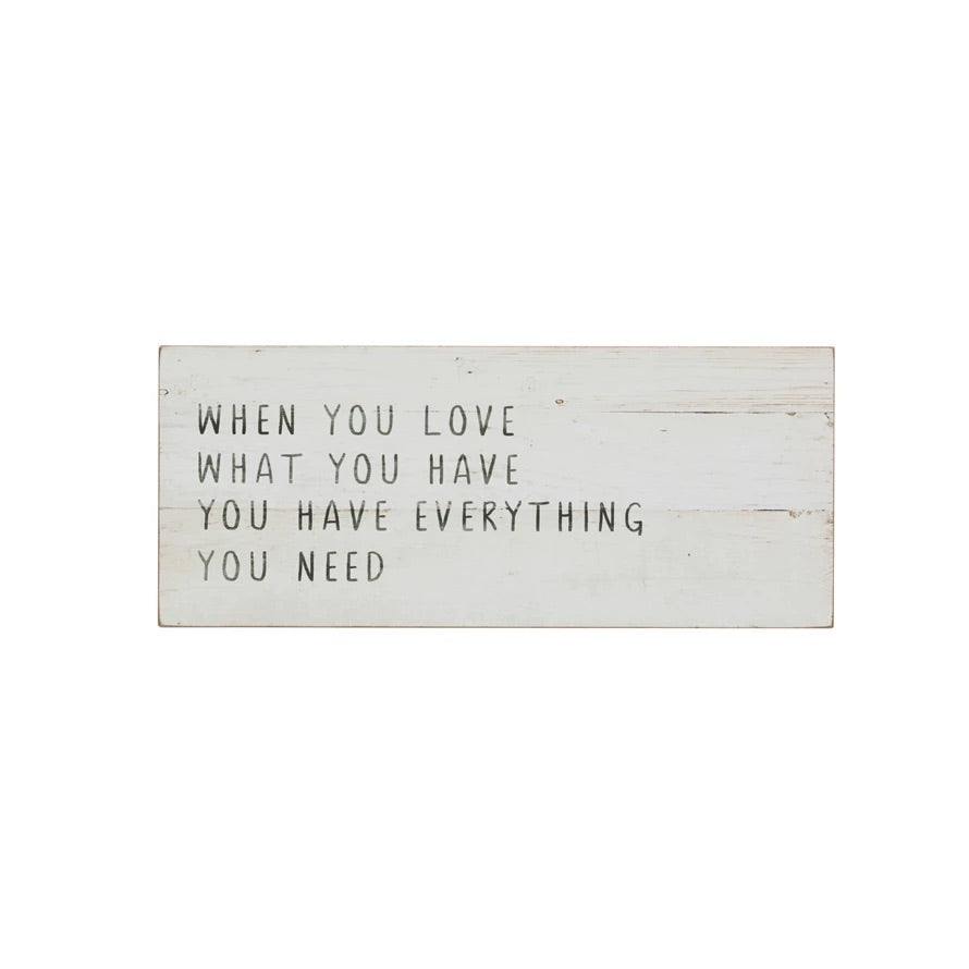 This "When you love what you have, you have everything you need" wood block says it all. Hang it on a wall or display on a shelf or tabletop.